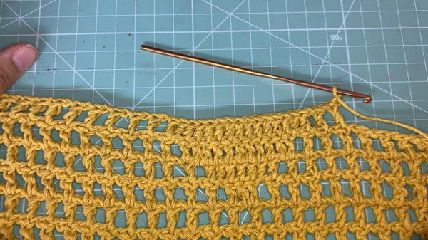 - Use chain and sc rows, the height decided by your measurement preference (example: 8 chains tall).