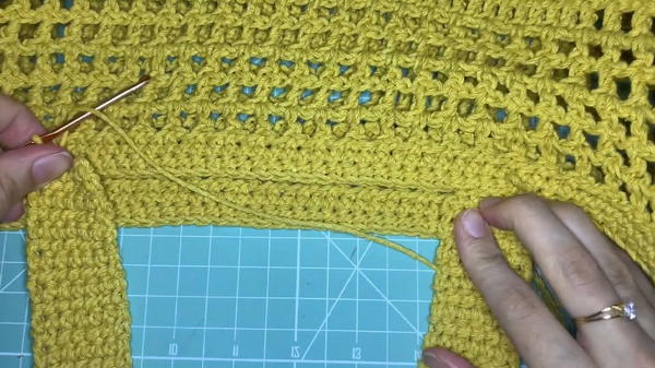 - This creates a triangular increase shaping by closing spaces and adding stitches.
