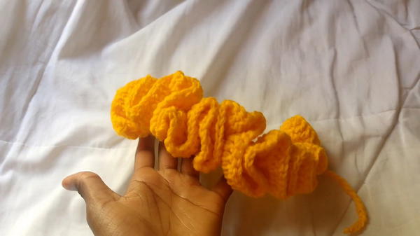 By the time you’ve tied off the last stitch and woven in the ends, you’ll have a scrunchie that stands out for its ruffled edges, rich texture, and secure grip.