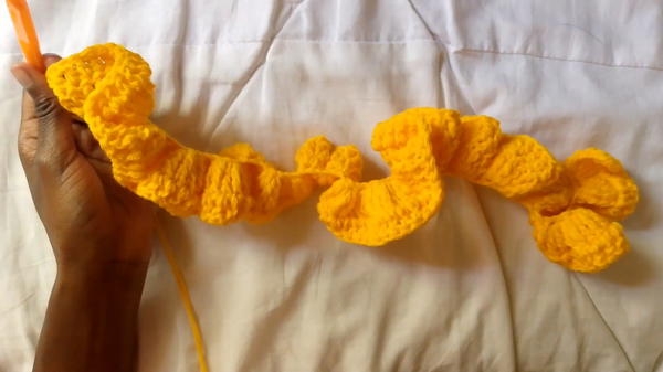 - No Elastic Band: Instead of a traditional elastic hairband, the scrunchie uses a crochet string woven through the ruffles for fastening.