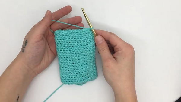 - In the last stitch of the row, work 4 single crochets to round the corner.