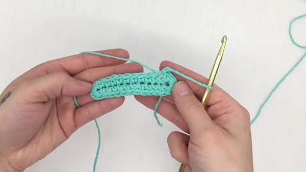 - On the opposite side of the chain, work 1 single crochet into each stitch until you reach the starting stitch.