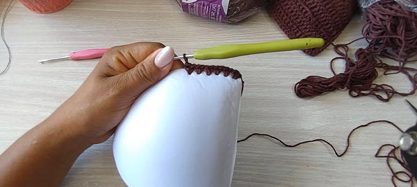 - Join yarn at bottom corner of crochet cup.