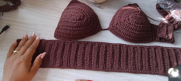 - SC evenly around crochet edge and through bra cup holes.