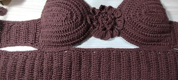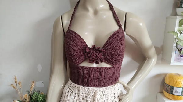 Crochet Tobacco Bra Top with Rolled Flower