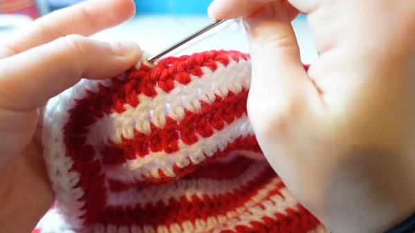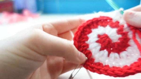 - Alternate Colors: Switch back to white after completing the red stitches, using the same increase pattern in the white section.