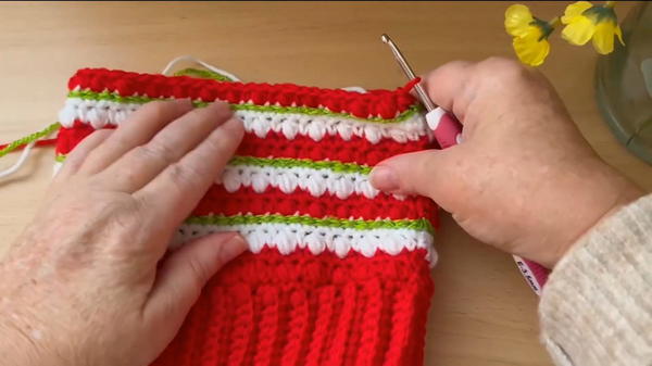 This step-by-step tutorial Creator demonstrates how to crochet a beautiful and festive Christmas Hat designed for a 6–12-month-old baby. The hat features ribbed banding, puff stitches, a unique striped color pattern, and a removable pom-pom. Its vibrant Christmas motif makes it perfect for holiday photos or celebrations.