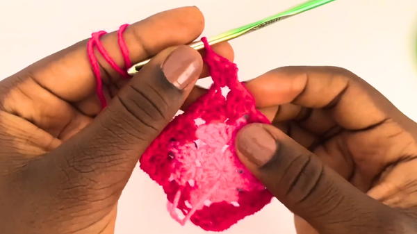 - (Optional) Change to a new yarn color by securing it in one of the corner spaces.