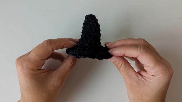 Finishing: Secure with a slip stitch and weave in the yarn ends. Optionally, attach the hat with some glue or stitches to keep it in place.