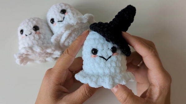 Your crochet ghost with its jaunty little hat is now complete! This charming figure is perfect for seasonal decor or as a gift that brings a smile to anyone’s face with its whimsical presence. Customize with different yarn colors or add embellishments to make your ghost truly unique. Let your creativity shine through as you enjoy the craft of making something special by hand.
