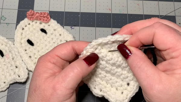 - Work single crochets (SC) evenly around the edge of the entire ghost, excluding the base. Follow these steps: