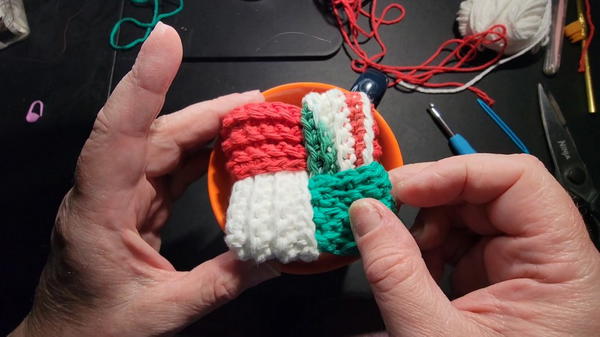 - Once all the pieces are joined, arrange the layers creatively to produce the compact, thick dishcloth structure.