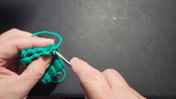 - Work 1 single crochet (SC) into the back horizontal bars of each chain. This technique avoids the typical pulling effect and creates a neater edge for the dishcloth.