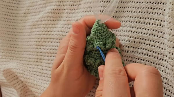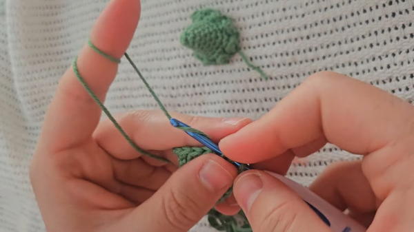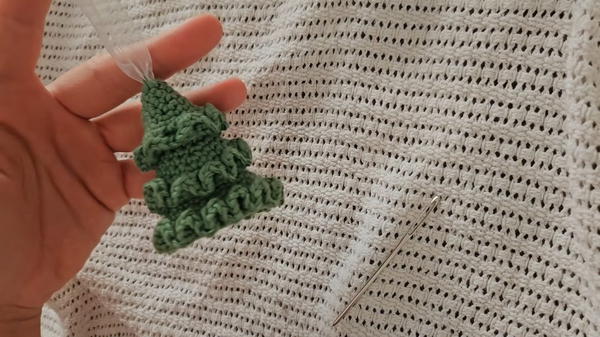 Simple increases and decreases create the layered effect, and a small trunk is added at the base to complete the silhouette.