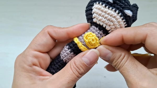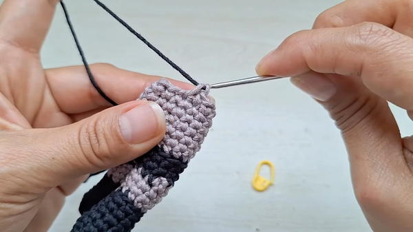 - Integrated Color Work: We crochet the cowl and part of the head directly onto the body through color changes, reducing the need to sew separate parts.