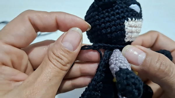 Securing Ends: When changing colors, knot the two yarn ends together and let them rest inside the piece to help with stuffing and fixation.