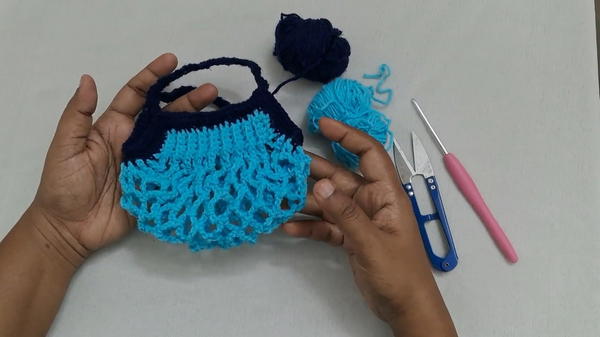 In this step-by-step tutorial you will learn how to create a beautiful mesh bag (or net bag). This beginner-friendly crochet project uses two colors of yarn, a crochet hook, and a cutter to create a functional and aesthetically pleasing accessory.