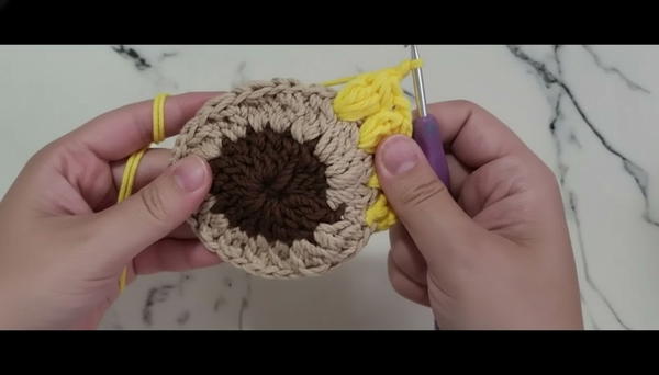 Tutor's Suggestions: Use thick yarn for better structure. Ensure your hook size matches your yarn weight to avoid a "floppy" bag. The tutor specifically recommends sunflower colors (brown, yellow, and cream) for the most authentic look.
