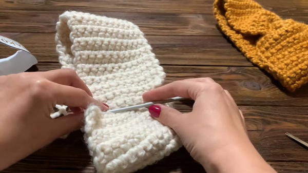 Hook Size for Density: The tutor suggests choosing a slightly smaller hook size than recommended for your bulky yarn (e.g., 5 mm hook) to ensure the fabric is denser and windproof.