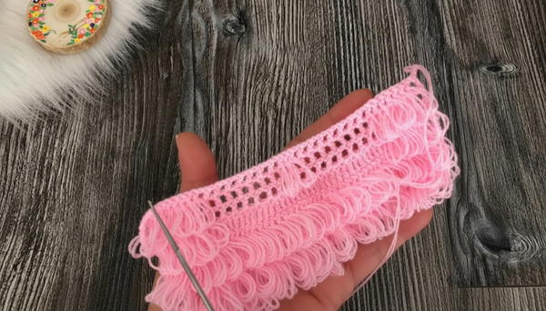 - Once your pouch piece is long enough, work a neat edging: