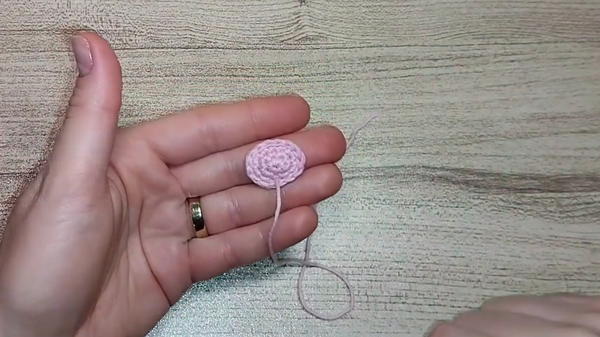 - Use pink yarn to create a magic ring with 6 SCs.