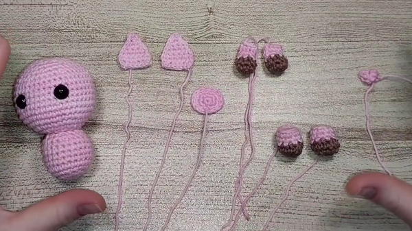 - Switch to pink yarn for the hoof area.