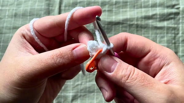 - Hook the yarn loop closest to your fingertip and form a closed circle.