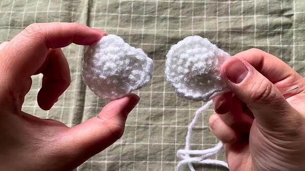 - Position the two head pieces together, aligning stitches.