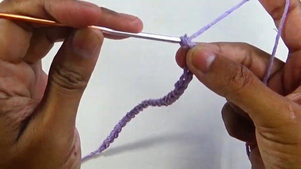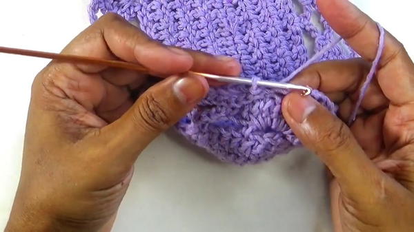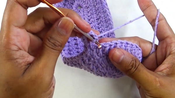 - Work two rows of double crochet stitches to shape the base.