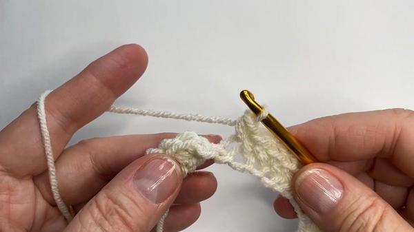 - Create 20 single crochets along the row.