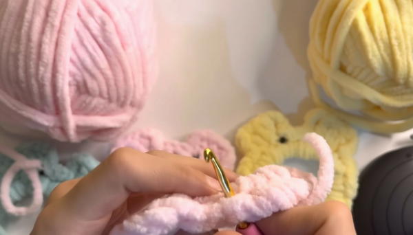 - Cute 3D ears made with double crochet and chain stitches