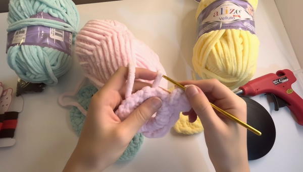 To make your clip even fluffier, choose yarn with a soft halo or eyelash finish. Wrap an extra layer of yarn around the clip before crocheting your SC stitches for added volume.
