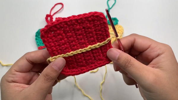 - Upon reaching the final row, chain 1, turn, and place 2 single crochets in the last stitch to form a corner.